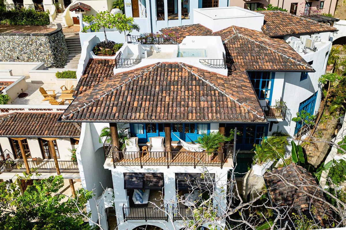 As you enter through the stunning hand carved doors, an entire oceanfront wall opens up to the sound of the surf. Traditional adobe walls, century-old columns, antique doors, and massive hand-hewn Guanacaste beams blend seamlessly with vibrant Cuban tiles and indigenous textiles, creating a space where old-world charm meets modern elegance. Enjoy the hammock or rocker on your balcony, sip wine, and watch the playful monkeys and the sun setting over the horizon.